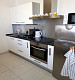 Opticky je kuchyně oddělená od obývacího pokoje. Zde KL, sklokeramický sporák s troubou a digestoří.