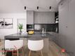 Součástí apartmánu je komfortní samostatná ložnice, která poskytuje dostatek místa pro manželskou postel, úložné prostory a klidné zázemí pro odpočinek. Dominantou je rozlehlý obývací pokoj s kuchyňským koutem, prosvětlený velkoformátovými prosklenými okny. Ty propojují interiér s exteriérem a poskytují výhled na parkoviště a okolní zázemí.
