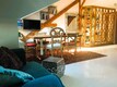 Obývací část bytu je umístěna do štítu historicky ceněného domu a je prostorem, kam se uchylujete do naprostého soukromí a relaxujete u televize nebo knížky.