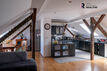 Byt vznikl vestavbou do půdního prostoru a zabírá celou délku domu, přibližně 24 metrů. Díky tomu nabízí netypické řešení prostoru a větší variabilitu využití jednotlivých místností. Dispozice je řešena jako 4+kk, přičemž jednotlivé části bytu na sebe navazují v podélném uspořádání. Prostor působí otevřeně a umožňuje případné úpravy dle potřeb nového vlastníka.