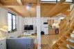 Byt je prakticky řešený, ve spodním podlaží najdete vstupní chodbu, prostorný obývací pokoj s kuchyňským koutem a moderní koupelnu se sprchovým koutem. Po dřevěném schodišti se dostanete do horního patra, kde je dostatek prostoru pro ložnici i pracovní zónu. Součástí podkroví je také velká šatna, která nabízí dostatek úložného prostoru.