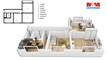 Dispozice: vstupní chodba s vestavěnou skříní, koupelna s vanou, samostatná toaleta, kuchyně, obývací pokoj, ložnice a dětský pokoj. Okna jsou orientována na sever, lodžie na jih, což zajišťuje dostatek denního světla.