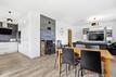 Byt je umístěn ve zvýšeném 1. podlaží s výhledem do ulice i do zahrady. Dispozice bytu: vstupní chodba s věstavenými skříněmi, obývací pokoj z něhož se vstupuje přímo na terasu, kuchyňský kout, ložnice s věstavěnými skříněmi, koupelna, samostatné WC a prostorná sklepní kóje. Kuchyňská linka je vyrobena na míru, její součástí je vestavná lednice s mrazničkou, samostatný vestavný mrazák, myčka, elektrická trouba a varná plynová deska, mikrovlnná trouba a digestoř. Vytápění bytu je zajištěno plynovým kondenzačním kotlem, který je umístěný mimo byt (ve sklepních prostorách).