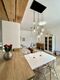 Interiér bytu je navržen v moderním skandinávském stylu s důrazem na kvalitu materiálů a praktické využití prostoru. Obytná část plynule propojuje obývací pokoj s jídelnou a kuchyňským koutem, který je kompletně osazen vestavnými spotřebiči. Prostoru dominují designové prvky v podobě přiznaných stropních trámů a masivních posuvných dveří. Ložnice je vybavena manželskou postelí a dostatečnými úložnými prostory. Koupelna disponuje velkoformátovým sprchovým koutem a moderní sanitární keramikou. Byt se prodává s veškerým zobrazeným vybavením a nevyžaduje žádné další počáteční investice.
