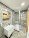 Naproti vstupním dveřím najdeme koupelnu se sprchovým koutem, umyvadlem, skříňkou, otopným žebříkem a WC.
