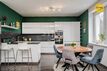 elegantní členění prostoru na obývací, jídelní a kuchyňskou část