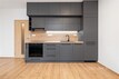 V bytě najdete moderní kuchyňskou linku s vestavěnými spotřebiči - lednicí, mrazákem, elektrickou troubou a indukční varnou deskou.